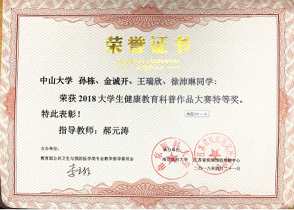 注:公共衛(wèi)生學院本科生第一黨支部獲中山大學2019年度先進黨支部稱號