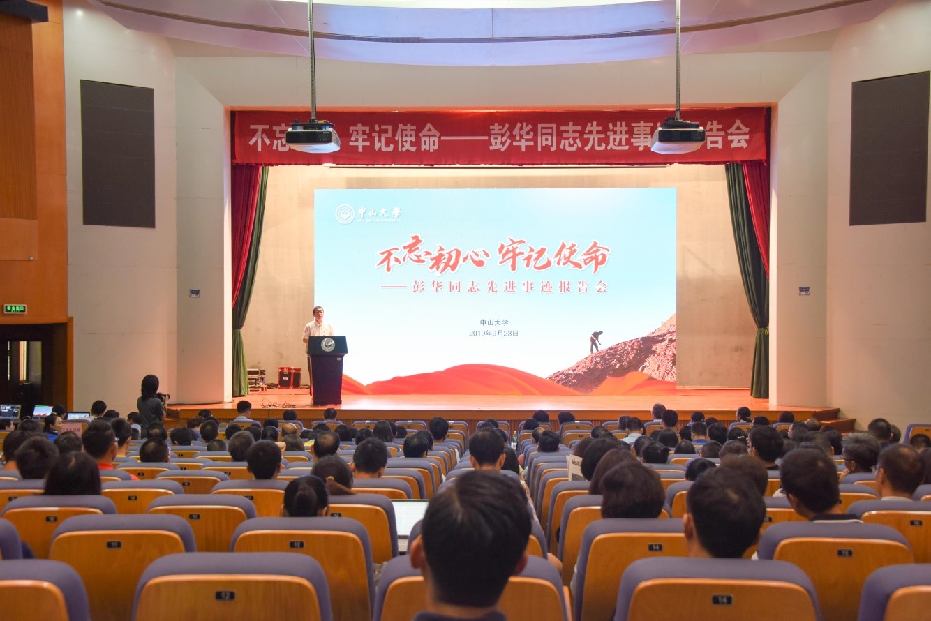 報(bào)告會(huì)首先播放了彭華同志先進(jìn)事跡宣傳片。彭華長(zhǎng)期從事地貌學(xué)和旅游開(kāi)發(fā)研究,是中國(guó)丹霞地貌科學(xué)研究的學(xué)科帶頭人和中國(guó)旅游地理和旅游規(guī)劃領(lǐng)域開(kāi)拓者之一。彭華同志離開(kāi)我們已經(jīng)一年零九個(gè)月了,但他的事跡仍在校內(nèi)外傳頌,他的精神仍受到大家的推崇。9月4日,彭華同志被中共廣東省委追授為“廣東省優(yōu)秀共產(chǎn)黨員”,9月21日被授予“南粵楷?!?。這樣一位具有深情大愛(ài)、銳意進(jìn)取、貢獻(xiàn)突出的著名學(xué)者和優(yōu)秀黨員,對(duì)事業(yè)的擔(dān)當(dāng)和奉獻(xiàn)、對(duì)信仰的忠誠(chéng)和追求都讓人敬佩,是不忘初心、牢記使命、砥礪前行的典范,是我們身邊人的榜樣。