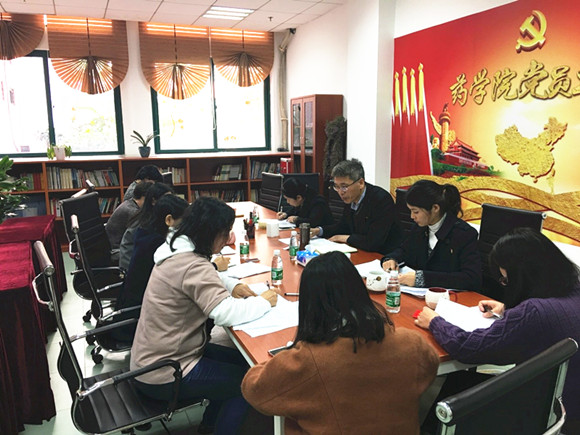 藥學(xué)院教工第一黨支部成員在黨員之家開(kāi)展組織學(xué)習(xí)