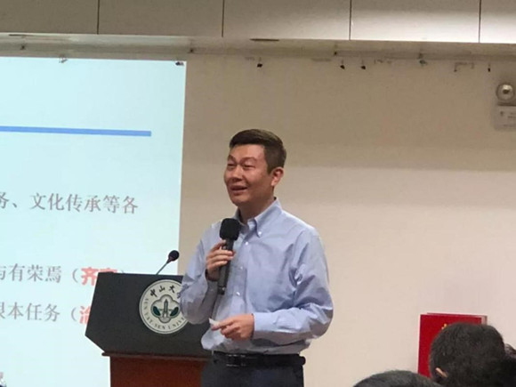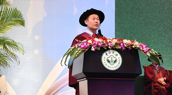 郝元濤同志在2019屆本科生畢業(yè)典禮上帶領(lǐng)同學(xué)們重溫院訓(xùn)