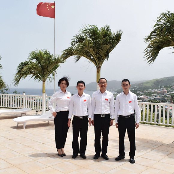 王風華主任醫(yī)師(左一)為首批援多米尼克國家醫(yī)療隊唯一女醫(yī)生