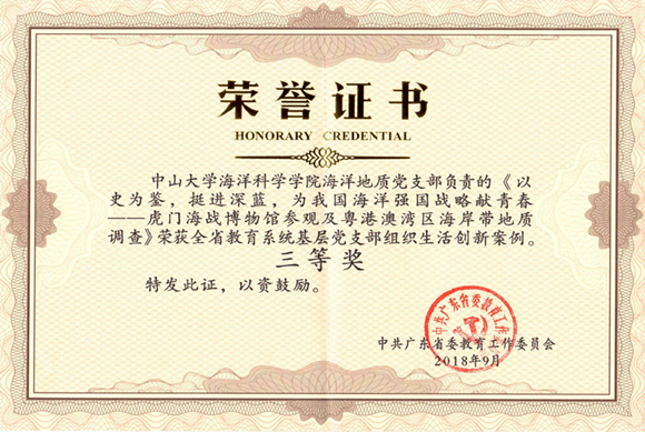 注:海洋科學(xué)學(xué)院黨委榮獲中山大學(xué)“2018年先進二級黨組織”稱號