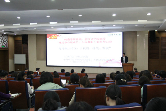 近日,嶺南學(xué)院黨委、外國語學(xué)院黨委在MBA大樓402會(huì)議室聯(lián)合舉辦了《粵港澳大灣區(qū)發(fā)展規(guī)劃綱要》學(xué)習(xí)會(huì),邀請(qǐng)廣東經(jīng)濟(jì)形勢(shì)報(bào)告團(tuán)宣講專家李勝蘭教授作題為“粵港澳大灣區(qū):機(jī)遇、挑戰(zhàn)、發(fā)展”的輔導(dǎo)報(bào)告。兩院黨委理論中心組成員、全體師生黨員參加了會(huì)議,會(huì)議由嶺南學(xué)院黃山書記主持。