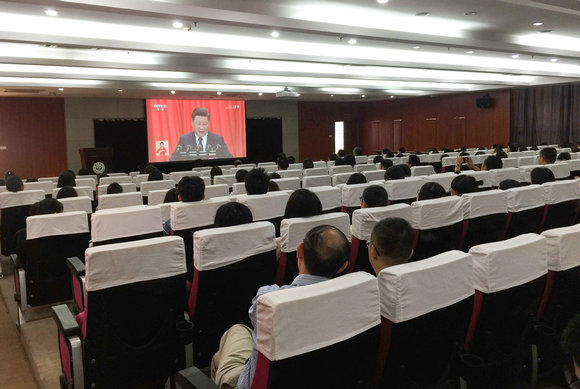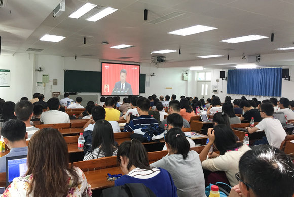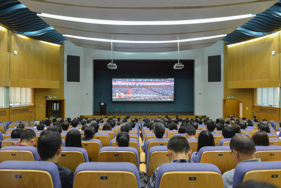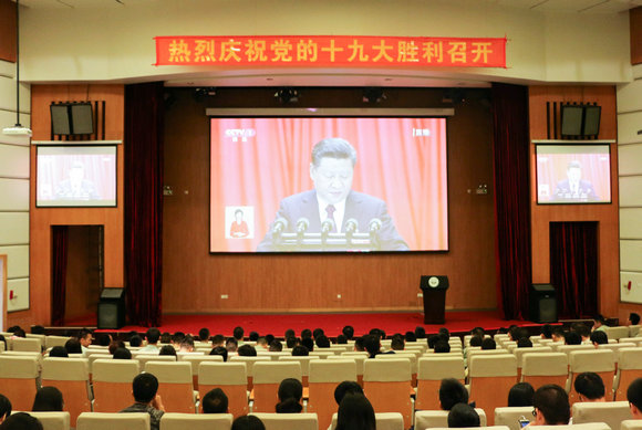 10月18日上午9時(shí),中國(guó)共產(chǎn)黨第十九次全國(guó)代表大會(huì)在北京人民大會(huì)堂隆重開(kāi)幕。習(xí)近平總書(shū)記代表第十八屆中央委員會(huì)向大會(huì)作報(bào)告。我校黨委高度重視,組織全校師生黨員收聽(tīng)收看開(kāi)幕會(huì)盛況。其中,在廣州校區(qū)各校園、珠海校區(qū)設(shè)置集中收看點(diǎn),全體校領(lǐng)導(dǎo)和校長(zhǎng)助理,各機(jī)關(guān)部處、二級(jí)單位負(fù)責(zé)人,各二級(jí)黨委(黨總支)、直屬黨支部、黨工委正、副書(shū)記,部分教師與學(xué)生代表共同聆聽(tīng)了習(xí)近平總書(shū)記的大會(huì)報(bào)告,各學(xué)院和各附屬醫(yī)院黨委也安排了多個(gè)轉(zhuǎn)播點(diǎn)組織師生員工收聽(tīng)收看,現(xiàn)場(chǎng)氣氛莊重、熱烈。