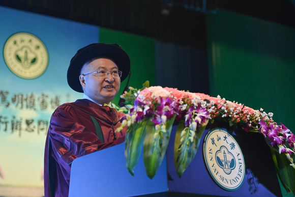 6月30日上午,夏書(shū)章教授雙手擎著重達(dá)五公斤的權(quán)杖,一步步堅(jiān)定無(wú)比地邁入梁銶琚堂。談到學(xué)位授予儀式,夏書(shū)章教授用了兩個(gè)詞來(lái)概括,“正規(guī)”“隆重”。他還對(duì)即將畢業(yè)、踏上人生新征程的中大學(xué)子表達(dá)了殷切的期望:“中大畢業(yè)生在工作崗位上得到的評(píng)價(jià)普遍很高,因?yàn)樗麄兲?shí)肯干、兢兢業(yè)業(yè),這是我們校風(fēng)的反映。希望今年的畢業(yè)生們?cè)谔こ鲂iT、成為中大校友后,能繼續(xù)保持我們一貫的校風(fēng)、學(xué)風(fēng)。也希望校友畢業(yè)后繼續(xù)關(guān)心母校、回報(bào)母校,形成良性循環(huán)?!毕臅?shū)章教授同時(shí)希望學(xué)校繼續(xù)做好工作,為學(xué)生營(yíng)造良好學(xué)風(fēng),培養(yǎng)卓越校友?!耙凰髮W(xué)之所以能成為一流大學(xué),是因?yàn)橛幸涣鞯慕逃h(huán)境和一流的學(xué)生。”