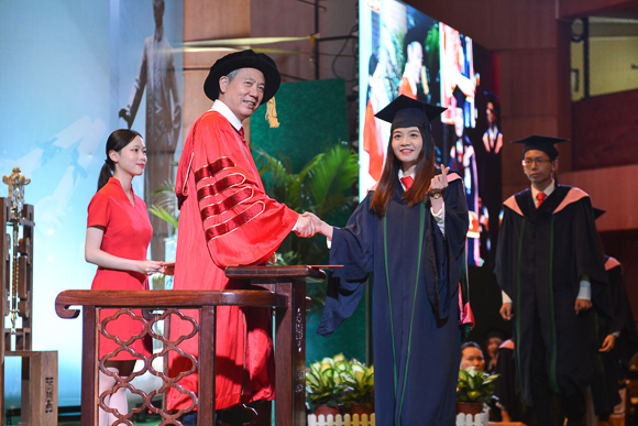 對(duì)于畢業(yè)生而言,莊嚴(yán)隆重的畢業(yè)典禮不僅僅帶給他們深刻的儀式感,也讓他們感受到了學(xué)校在細(xì)節(jié)里蘊(yùn)含的脈脈溫情。嶺南學(xué)院的碩士畢業(yè)生林義偉表示,畢業(yè)典禮充分喚起了他對(duì)母校的感情:“學(xué)校給我們準(zhǔn)備了這么隆重的儀式,我覺(jué)得特別興奮。權(quán)杖進(jìn)入會(huì)場(chǎng)的時(shí)候,我全身的雞皮疙瘩都起來(lái)了。跟校長(zhǎng)握手真的特別有意義,這讓我更加感受到了道別的意味?!绷至x偉是在工作十年之后重新返回校園學(xué)習(xí)的,這樣特別的經(jīng)歷也讓他對(duì)中大的學(xué)習(xí)更有感觸。他感謝中大提供了一個(gè)很好的發(fā)展平臺(tái):“我們不僅有很多到國(guó)外學(xué)校、公司交流的機(jī)會(huì),也能聆聽(tīng)到很多海內(nèi)外名校教授的演講與講座。”