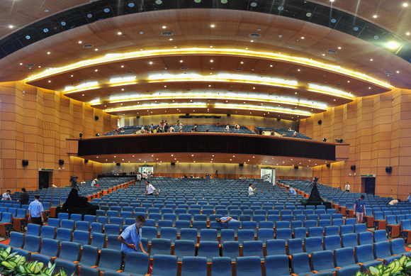 六月初,火辣的太陽(yáng)小露盛夏的威力,總務(wù)處的工作人員已經(jīng)開(kāi)始在會(huì)場(chǎng)排查用水用電安全隱患。這是每一年后勤人最忙碌的時(shí)刻:檢查各處水電設(shè)施是否正常,維修更換老化電源線路,處理供水設(shè)備滴漏,更新因白蟻而損壞的木質(zhì)門框、地板、柜子......由于天氣炎熱,梁銶琚堂又是校園活動(dòng)的聚集地,會(huì)場(chǎng)內(nèi)的三臺(tái)中央空調(diào)總是同時(shí)處于高負(fù)荷的運(yùn)轉(zhuǎn)狀態(tài),會(huì)有停轉(zhuǎn)的隱患。為確保室內(nèi)溫度適宜,總務(wù)處的工作人員多次維修,更換了防護(hù)網(wǎng),清除了堵塞外機(jī)水冷槽的樹(shù)葉。