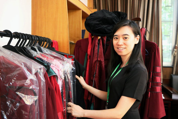 擔(dān)任司儀的男生不僅要有一副“美嗓子”,還要有一副“鐵嗓子”,因?yàn)樗麄儗⒊袚?dān)四天十六場(chǎng)的儀式主持工作;禮儀姑娘們需要幫助擺放權(quán)杖、引導(dǎo)觀禮教授就坐以及協(xié)助校長(zhǎng)發(fā)放畢業(yè)紀(jì)念冊(cè);而現(xiàn)場(chǎng)志愿者則要協(xié)調(diào)司儀、禮儀的工作,為前兩者準(zhǔn)備好必須的后勤物資——如服裝、飲用水、金嗓子潤(rùn)喉片等。