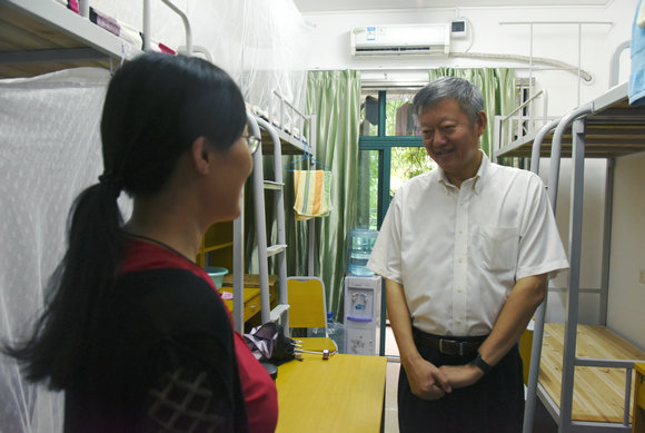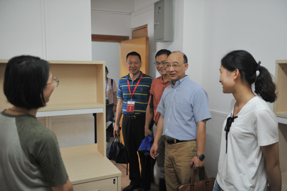 陳春聲書記、羅俊校長(zhǎng)、余敏斌副書記走訪新生宿舍,看望新生
