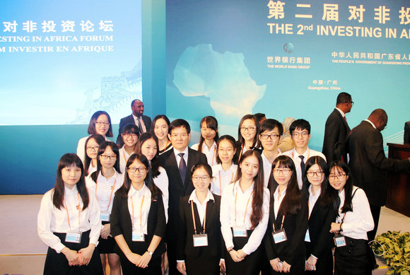 2016年9月7日,在第二屆對非投資論壇上,廣東省委常委、副省長徐少華看望了我校國際翻譯學院“青馬”公益服務隊志愿者們。