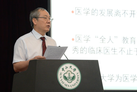 他指出,培養(yǎng)未來的一流醫(yī)生是高水平大學(xué)臨床醫(yī)學(xué)教育的根本目標(biāo)。大學(xué)最根本的使命在于人才的培養(yǎng),中山大學(xué)在近150年的臨床醫(yī)學(xué)教育中,所不斷追求的,就是要培養(yǎng)基礎(chǔ)厚、能力強、發(fā)展后勁足的一流臨床醫(yī)師。這既是大學(xué)人才培養(yǎng)目標(biāo)在醫(yī)科的體現(xiàn),也是中山大學(xué)醫(yī)學(xué)教育的傳統(tǒng),更是新的歷史條件下中山大學(xué)必須擔(dān)負的責(zé)任。中山大學(xué)以“德才兼?zhèn)?、領(lǐng)袖氣質(zhì)、家國情懷”作為新的歷史條件下的學(xué)校人才培養(yǎng)目標(biāo),中大的醫(yī)科創(chuàng)造了國家西醫(yī)發(fā)展史上數(shù)個第一,這種追求卓越的精神,從誕生之日起就已經(jīng)融入了中山大學(xué)臨床醫(yī)學(xué)教育的血液,而“醫(yī)病醫(yī)身醫(yī)心,救人救國救世”的醫(yī)訓(xùn)是中大醫(yī)科人的擔(dān)當(dāng)精神的高度概括。中國經(jīng)濟社會發(fā)展到現(xiàn)在,整體上接近初級發(fā)達國家水平,而廣東實際上是中等發(fā)達國家水平。為社會培養(yǎng)更多具有國際一流水平的臨床醫(yī)學(xué)人才,是在當(dāng)前歷史條件下,中大必須為國家承擔(dān)起的責(zé)任和使命。