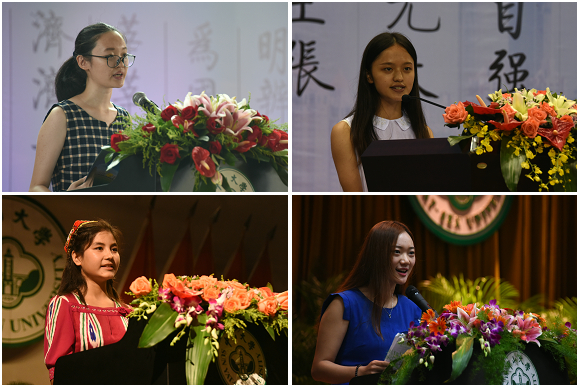 新生代表戴紫薇、楊靜、帕熱迪古麗·努爾艾合麥提、徐步舒分別發(fā)言,表達了成為一名中大人的喜悅與激動,并表示,在新的起點,當(dāng)謹記校訓(xùn),志存高遠;從點滴做起,珍惜時間,不畏艱苦,不斷奮斗,堅定前行,續(xù)寫人生的新篇章。