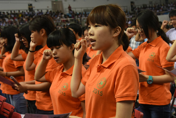 全體新生舉起右手莊嚴宣誓