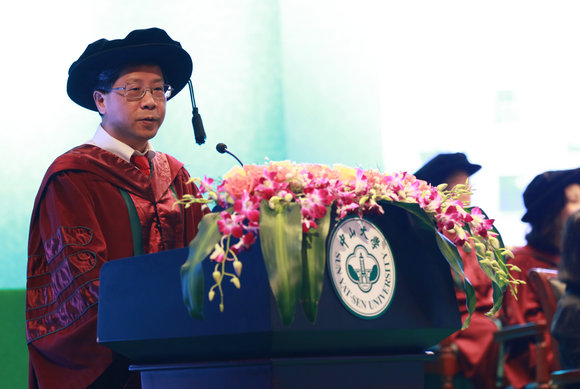 管理學(xué)院的毛蘊詩教授今年已是第八次執(zhí)中山大學(xué)權(quán)杖。他表示既榮幸又高興,不僅為學(xué)校培養(yǎng)出的學(xué)生學(xué)業(yè)有成而開心,也為學(xué)校發(fā)展越來越好而高興。毛蘊詩教授說,畢業(yè)典禮是莊嚴神圣的場合,對于畢業(yè)生來說,畢業(yè)典禮是他們新的起點。毛教授勉勵畢業(yè)生們,“畢業(yè)之后要多為社會做貢獻,以己所能,為祖國貢獻出自己的一份力量,為國爭光。”