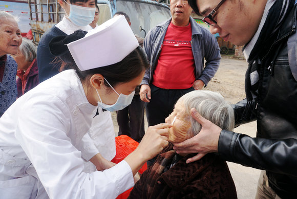 義診現(xiàn)場,前來義診的村民們絡繹不絕,村民們對醫(yī)生、護士們的醫(yī)療服務贊不絕口。