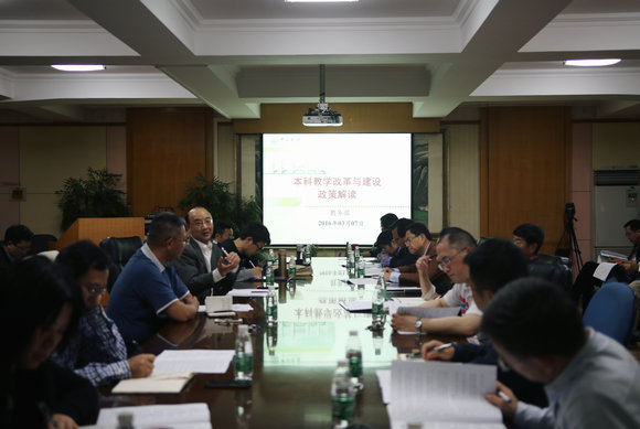 教務(wù)部主任陳敏就春季工作會議的相關(guān)政策進行了解讀,并就下階段本科教學(xué)工作進行了布置。他向與會代表介紹了教務(wù)部圍繞春季工作會議主題開展前期工作的背景,對本科教學(xué)改革與建設(shè)的激勵與約束政策的內(nèi)容進行了講解,主要通報了學(xué)校進一步優(yōu)化招生機制、啟動專業(yè)辦學(xué)評價與退出機制、專業(yè)建設(shè)機制、培養(yǎng)方案修訂與課程建設(shè)、人才培養(yǎng)模式的改革、教學(xué)榮譽制度與教師隊伍建設(shè)、實驗教學(xué)等支撐條件建設(shè)、教學(xué)質(zhì)量評價與督導(dǎo)等方面的工作思路,引導(dǎo)各單位在實際工作中更好地貫徹落實春季工作會議精神。