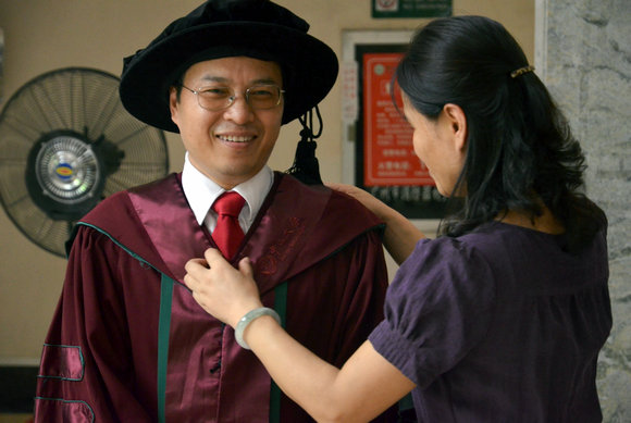 再次穿起導師袍(侯易 攝)