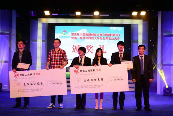 12月9日下午,第三屆中國創(chuàng)新創(chuàng)業(yè)大賽(港澳臺賽區(qū))暨首屆兩岸四地大學生創(chuàng)新創(chuàng)業(yè)大賽總決賽在廣東科學中心落下帷幕??萍疾炕鹁嬷行狞h委副書記武毅,廣東省科技廳廳長黃寧生,團省委副書記池志雄,番禺區(qū)區(qū)長樓旭逵,我校黨委常務副書記、副校長陳春聲等領導出席活動。來自香港科技大學、新竹交通大學、高雄中山大學等港臺高校代表和北京、廣東、臺灣等地創(chuàng)投機構、產(chǎn)業(yè)機構的代表,以及來自廣州大學城高校的近三百名師生參加了活動。