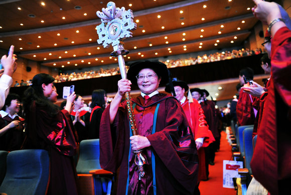 典禮上持權(quán)杖入場(chǎng)的王美今教師