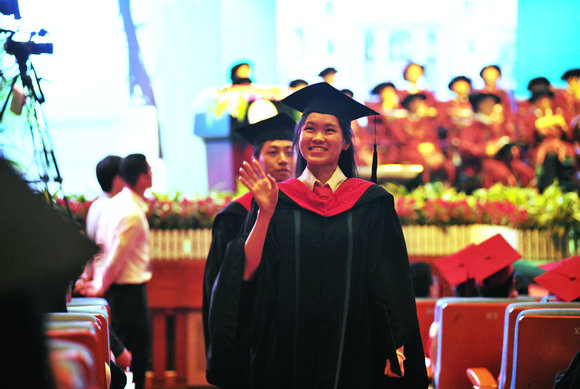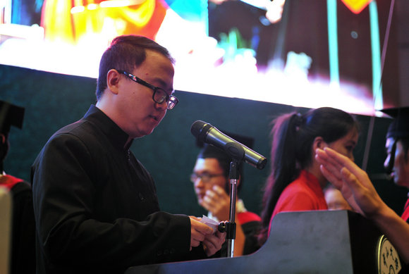 來(lái)自資訊管理學(xué)院2012級(jí)的李林峰便是司儀中的一員,朗誦學(xué)位獲得者的名字看似簡(jiǎn)單,實(shí)則很難,為了感染同學(xué)們,讓這個(gè)神圣的時(shí)刻更完美,司儀們“要有感情,有共鳴,還要帶著微笑,要求很嚴(yán)格?!?來(lái)自中大附屬第一醫(yī)院的神經(jīng)科碩士譚帥是李林峰的好友,也是畢業(yè)典禮的司儀,這是他第一次參加畢業(yè)典禮。“我感到很榮幸。”提到對(duì)畢業(yè)典禮的感受,譚帥自豪地說(shuō),“我一些在國(guó)外留學(xué)的同學(xué)都說(shuō)我們的畢業(yè)典禮跟英國(guó)的劍橋、牛津很像?!?br />