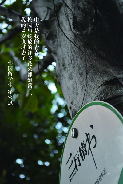 又是一年畢業(yè)時,這樣的時節(jié),總催生許多感人的瞬間和難忘的細(xì)節(jié)。在傳播與設(shè)計學(xué)院大廳里的畢業(yè)留言墻上,寫滿了師生的感言,有的是告別,有的是祝福,有的是戲謔,更多的是“我愛中大”和“我愛傳設(shè)院”的留言。一個女孩子正低頭在墻的下端寫著“真舍不得走”的字樣,旁邊的桌子上,幾個學(xué)生在就業(yè)中心發(fā)放的紀(jì)念冊上使勁地蓋著有學(xué)院樓標(biāo)志的印章,恨不得蓋滿整本冊子,有的同學(xué)還把印章蓋在了自己的手上。說起這樣做的原因時,學(xué)生說紀(jì)念冊中選了許多三行情書,詩情畫意的,令人懷舊,更對母校和學(xué)院依依不舍。