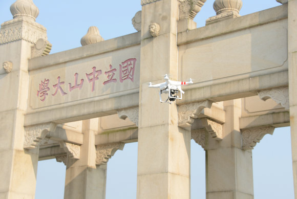 四軸飛行器性能稍差,抗風(fēng)和抗干擾能力都較差,航拍中,遇到了幾次小“事故”。在南校區(qū),一次正航拍圖書館,由于突然的橫風(fēng),把飛行器直接吹落,掉在階梯上,飛行器底部的攝像頭正好磕在石階上壞了,兩個螺旋槳也摔壞了;另一次,飛行器從校訓(xùn)處起飛,沿中區(qū)草坪飛過孫中山銅像、惺亭,到十友堂附近便受強(qiáng)信號干擾,被迫返航,沒能拍到從校訓(xùn)直飛到北門再至珠江上空的連貫的中區(qū)中軸線全景,成為南校區(qū)航拍中留有遺憾的一段;第三次赴東校區(qū)航拍時,陽光較好但是風(fēng)有點(diǎn)兒大,回去將航拍成果傳上電腦時,才發(fā)現(xiàn)畫面出現(xiàn)了輕微的“果凍效應(yīng)”(指拍攝中垂直的物體在鏡頭搖晃時產(chǎn)生左右傾斜像“果凍”左右搖晃的情形,編者注),導(dǎo)致拍攝畫面無法使用,半天的努力付諸東流。覃東駿解釋道:“手機(jī)監(jiān)控屏幕太小,根本無法看出畫面是否出現(xiàn)了‘果凍效應(yīng)’?!?/div>