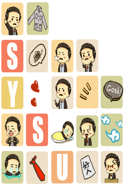 為了更好地呈現(xiàn)這個理念,他們度過了一段“黑暗”的日子,連續(xù)一個月,每晚十點雷打不動的會議,從中大的建筑物到小動物,各種稀奇古怪的想法都曾被提出,直到最終確定以中山先生為原型創(chuàng)作的“孫小偶”成為他們的“主打”?!耙驗槲覀儗W(xué)校是‘中山手創(chuàng)’,中山先生在同學(xué)中有很高的認同度。我們也堅持孫小偶的形象必須萌,不能惡搞?!碧崞饘O小偶形象的誕生過程,李拯民滿臉笑意。之后,小偶工作室又設(shè)計了一系列孫小偶的表情,一經(jīng)推出,便迅速走紅,火爆的程度讓成員們都感到驚訝。