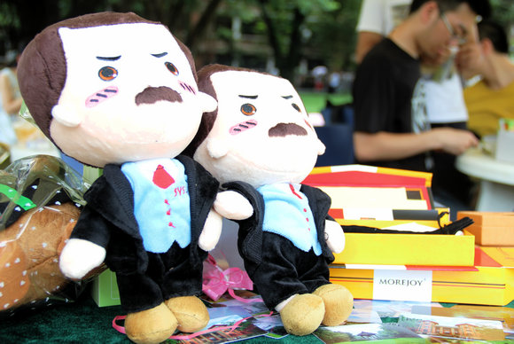 在畢業(yè)嘉年華的現(xiàn)場,圖書館學(xué)碩士畢業(yè)生許同學(xué)和她的小伙伴們,拿著孫小偶在大草坪上合影。許同學(xué)表示,它與中山先生的形象相似,這是她的愛校情節(jié)。而2012級信息科學(xué)與技術(shù)學(xué)院的碩士秦兆東則大呼遺憾,“一直都想買布偶,但因為缺貨老都買不到。而且我每次參加他們在微信平臺上的抽獎,都沒有獲獎,何時才會輪到我??!”