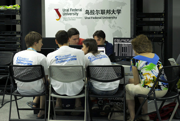 烏拉爾聯(lián)邦大學(xué)也是首次參賽,隊(duì)伍由五位計(jì)算機(jī)科學(xué)系的學(xué)生組成。帶隊(duì)老師表示,由于學(xué)校沒(méi)有超級(jí)計(jì)算機(jī)配備的Xeon Phi芯片,這支隊(duì)伍今年2月才正式確定成員,3月隊(duì)員首次在莫斯科大學(xué)操作超級(jí)計(jì)算機(jī)。隊(duì)員們特意提早來(lái)到廣州適應(yīng)環(huán)境,全力以赴投入競(jìng)賽。在決賽的集群搭建和調(diào)試階段,雖然隊(duì)員們耗費(fèi)較長(zhǎng)時(shí)間來(lái)熟悉官方提供的硬件,也遇到了網(wǎng)絡(luò)故障等問(wèn)題,但整體氣氛是輕松的。隊(duì)員瑪林娜表示,他們是抱著向其他學(xué)校學(xué)習(xí)的態(tài)度來(lái)參賽的,并借此機(jī)會(huì)來(lái)觀摩平時(shí)難以接觸到的高端超算設(shè)備。