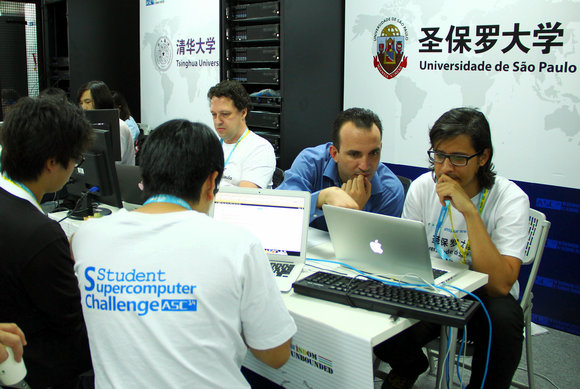 圣保羅州立大學(xué)團(tuán)隊(duì)是首次參加國(guó)際性的超算競(jìng)賽,同時(shí)也是巴西第一支成立并參加此類超算競(jìng)賽的隊(duì)伍。從2013年10月開始,帶隊(duì)老師就在圣保羅州立大學(xué)藝術(shù)、科學(xué)與人文學(xué)院進(jìn)行隊(duì)員招募。經(jīng)過(guò)一段時(shí)間的選擇與磨合,團(tuán)隊(duì)最終成型,成員皆為大三、大四的學(xué)生。他們中有一些已經(jīng)具有編程工作的實(shí)際經(jīng)驗(yàn),這也是圣保羅大學(xué)團(tuán)隊(duì)具有競(jìng)爭(zhēng)優(yōu)勢(shì)的一點(diǎn)。除了參加ASC14外,他們還報(bào)名參加今年6月將在德國(guó)舉行的國(guó)際大學(xué)生超級(jí)計(jì)算機(jī)競(jìng)賽(ISC)。雖然在準(zhǔn)備工作上有很大程度的重疊,但是團(tuán)隊(duì)成員們都在非常努力地完成挑戰(zhàn)。對(duì)他們而言,參加比賽只是計(jì)劃中的一部分,他們更希望借此舉動(dòng)提升學(xué)院在相關(guān)領(lǐng)域的專業(yè)能力和競(jìng)爭(zhēng)實(shí)力。
