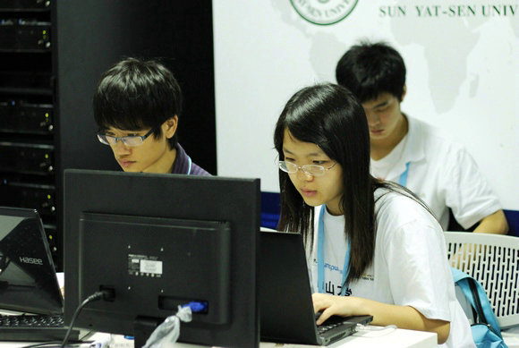 4月22日上午,廣州超算中心ASC14總決賽現(xiàn)場,各參賽隊仍處于緊張的調(diào)試和優(yōu)化階段。就在此時,兩張近乎一模一樣的面孔引起了我們的注意。