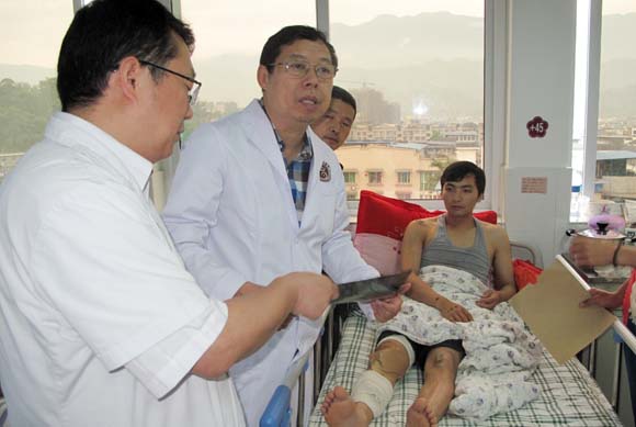 4月27日,接到國家衛(wèi)生計生委的緊急通知,附屬一院迅速派出康復(fù)科黃東鋒教授,作為衛(wèi)生計生委國家醫(yī)療隊專家組成員赴雅安抗震救災(zāi)前線指導(dǎo)康復(fù)治療工作。