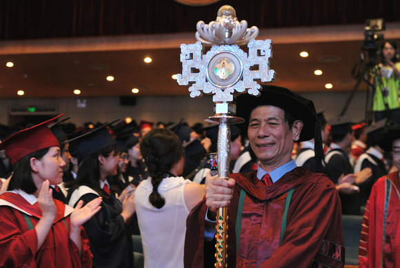 一位長者悄悄來到現(xiàn)場,與主禮教授親切交談、慰問臺前幕后的工作人員,又悄悄地離去。畢業(yè)的學(xué)子、觀禮的家長與他擦肩而過,只感受到他親切、溫暖的笑容,卻沒有認(rèn)出來他就是校黨委書記鄭德濤教授。
