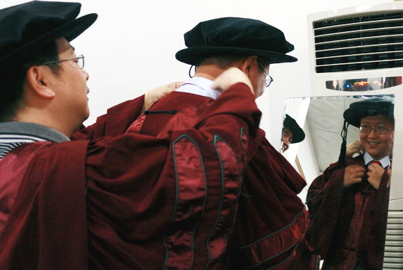 “畢業(yè)典禮現(xiàn)場熱鬧而肅靜。唱校歌時(shí),心情很激動;特別是教授進(jìn)、退場時(shí),告別曾經(jīng)教導(dǎo)自己的老師們,更加激動?!?