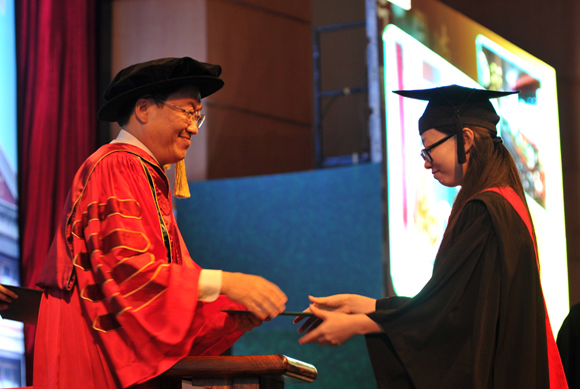 他還寄語畢業(yè)生:“無論城市或基層,都要牢記校訓(xùn),為母校爭光,是金子總是會發(fā)光的。祝你們成功!”