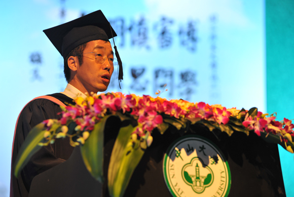 演講中,他用自己的心得感悟與畢業(yè)生共勉:一要勇敢做選擇,二要積極去改變,三是在多元化的社會中要尊敬和追求“平凡的成功”。最后,他將錢伯斯的名言轉(zhuǎn)贈大家:“只要有夢想,全世界都會給你讓路”,令畢業(yè)生倍受鼓舞。