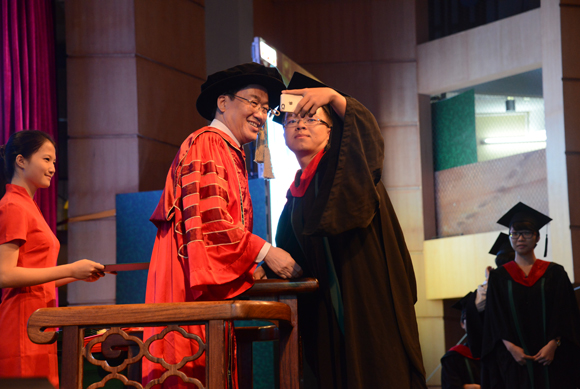 嶺南學院09級歐同學下臺后,激動之情難以平復:“畢業(yè)典禮比我想象中還要莊嚴神圣。今天最難忘的是見到了許寧生校長并和他握手啦!”