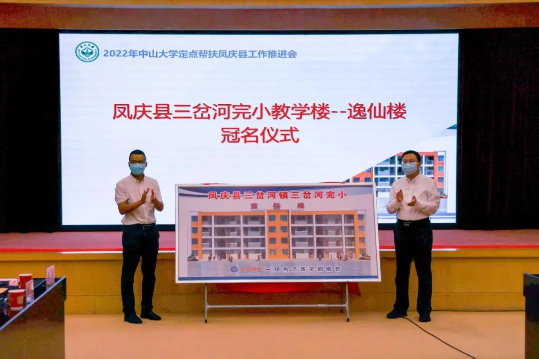 會(huì)上,高松校長(zhǎng)和三岔河完小校長(zhǎng)一起為我校援建的教學(xué)樓“逸仙樓”冠名揭牌。