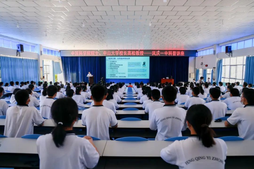 隨后,高松校長(zhǎng)前往鳳慶縣第一中學(xué),以“分子科學(xué)——學(xué)科交叉融合中的化學(xué)”為主題,講授了一堂生動(dòng)的化學(xué)課,并回答學(xué)生提問。高松校長(zhǎng)通過一系列生動(dòng)的案例,向在座的學(xué)生講述了化學(xué)學(xué)科的交叉融合、分子科學(xué)的前沿研究,以及化學(xué)與我們?nèi)粘I畹木o密關(guān)系,并鼓勵(lì)在座學(xué)生“趁年輕樹立遠(yuǎn)大的志向,去學(xué)習(xí)鉆研、選硬骨頭挑戰(zhàn)”?!斑@對(duì)大家未來發(fā)展自我學(xué)習(xí)、獨(dú)立思考、行動(dòng)實(shí)踐的能力,都是非常有益的?!彼f。
