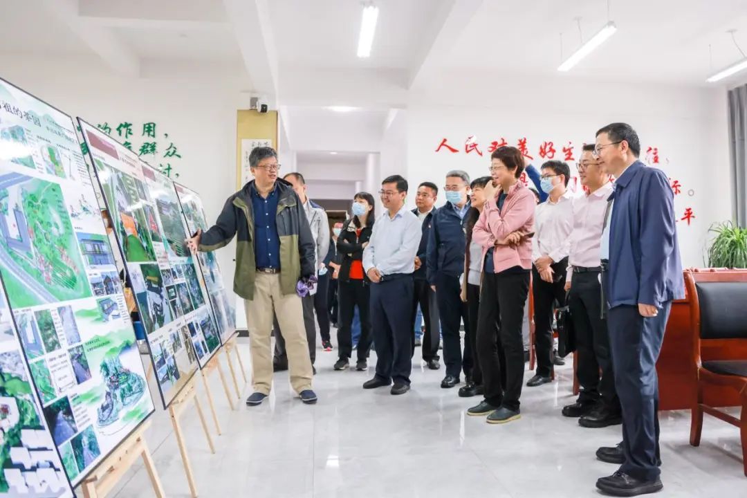 李郇教授(左)介紹以紅塘村為樣板的教育部鄉(xiāng)村振興創(chuàng)新培育試驗(yàn)項(xiàng)目的進(jìn)展情況