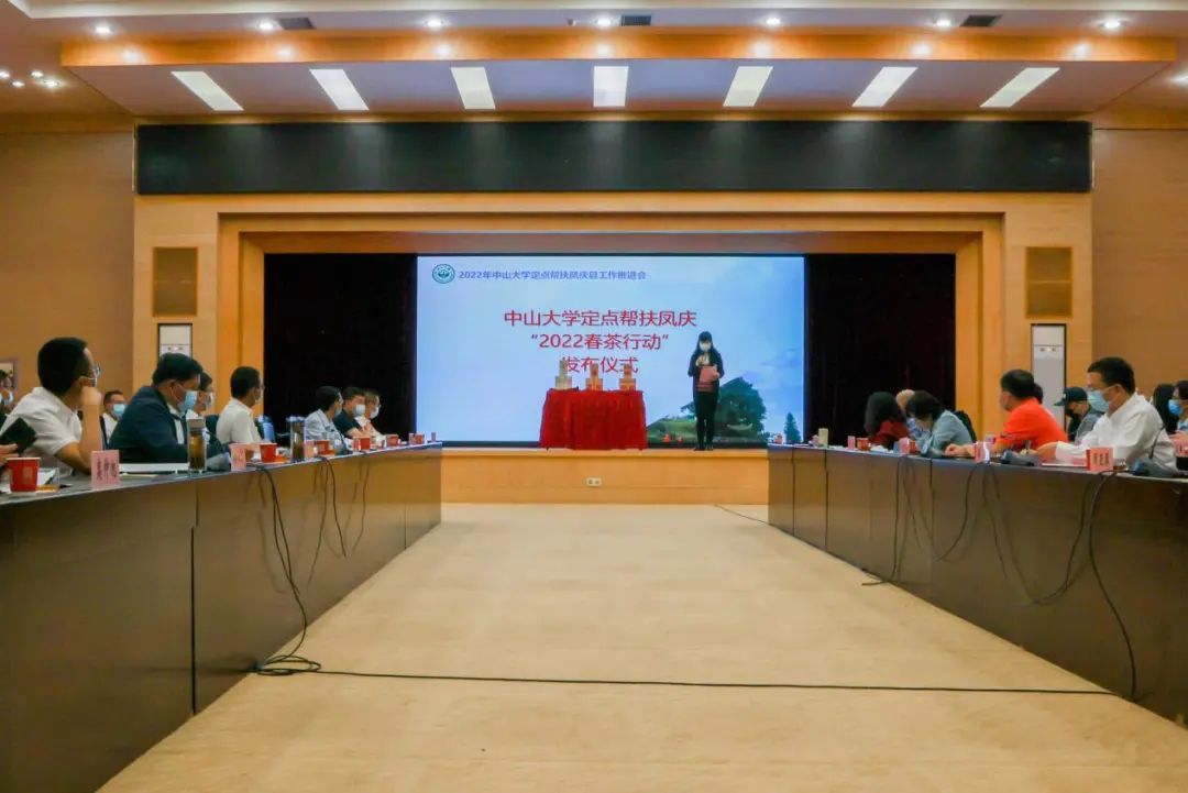 隨后,“中山大學(xué)定點(diǎn)幫扶鳳慶2022春茶行動(dòng)”正式發(fā)布。校工會(huì)常務(wù)副主席許東黎發(fā)布了校工會(huì)、校友總會(huì)委托校友企業(yè)瀾滄古茶和學(xué)校的幫扶企業(yè)鳳慶大擺田茶廠專屬定制的三款春茶。我校幾十位學(xué)者、醫(yī)生、學(xué)生和校友,錄制視頻《我為鳳慶滇紅茶打call》,義務(wù)為鳳慶滇紅茶代言,并由學(xué)校官方新媒體平臺(tái)發(fā)布,以網(wǎng)絡(luò)帶貨的形式推進(jìn)“消費(fèi)幫扶”。每售出一份春茶,銷售額的10%將由企業(yè)捐贈(zèng)到中山大學(xué)教育發(fā)展基金會(huì)鄉(xiāng)村振興專項(xiàng)。