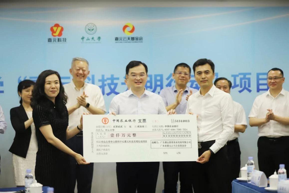 中山大學黨委書記陳春聲,廣東省人力資源和社會保障廳黨組書記、副廳長陳敏,梅州市委常委、統(tǒng)戰(zhàn)部長崔毅,中山大學中山眼科中心黨委書記夏丹,該項目實施負責人、中山眼科中心副主任卓業(yè)鴻,中山大學教育發(fā)展基金會秘書長黃瑞敏等一同出席了啟動儀式。啟動儀式上,嘉元科技董事長廖平元、嘉元云天基金會理事長巫欲曉共同向中山大學教育發(fā)展基金會秘書長黃瑞敏遞交捐贈支票,中山大學黨委書記陳春聲向嘉元科技董事長廖平元、嘉元云天基金會理事長巫欲曉頒發(fā)鳴謝證書。