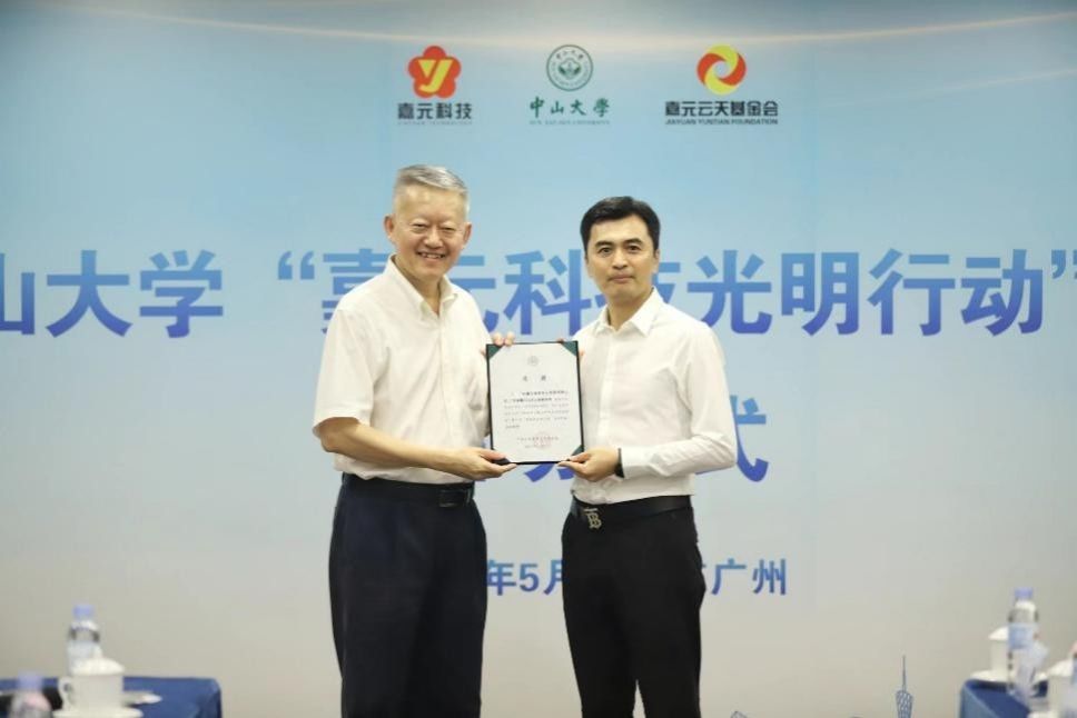 中大新聞網(wǎng)廣州5月29日電(通訊員林娜)5月27日,由廣東嘉沅投資實業(yè)發(fā)展有限公司和廣東嘉元云天基金會聯(lián)合發(fā)起的公益項目中山大學“嘉元科技光明行動”,在廣州市廣東大廈舉行啟動儀式,梅州市工商聯(lián)主席、嘉沅實業(yè)、嘉元科技董事長廖平元與梅州市工商聯(lián)副主席、嘉元云天基金會理事長巫欲曉共同宣布向中山大學教育發(fā)展基金會捐贈1000萬元,用于支持中山大學中山眼科中心未來5年在梅州蘇區(qū)等地開展眼科疾病防治項目。