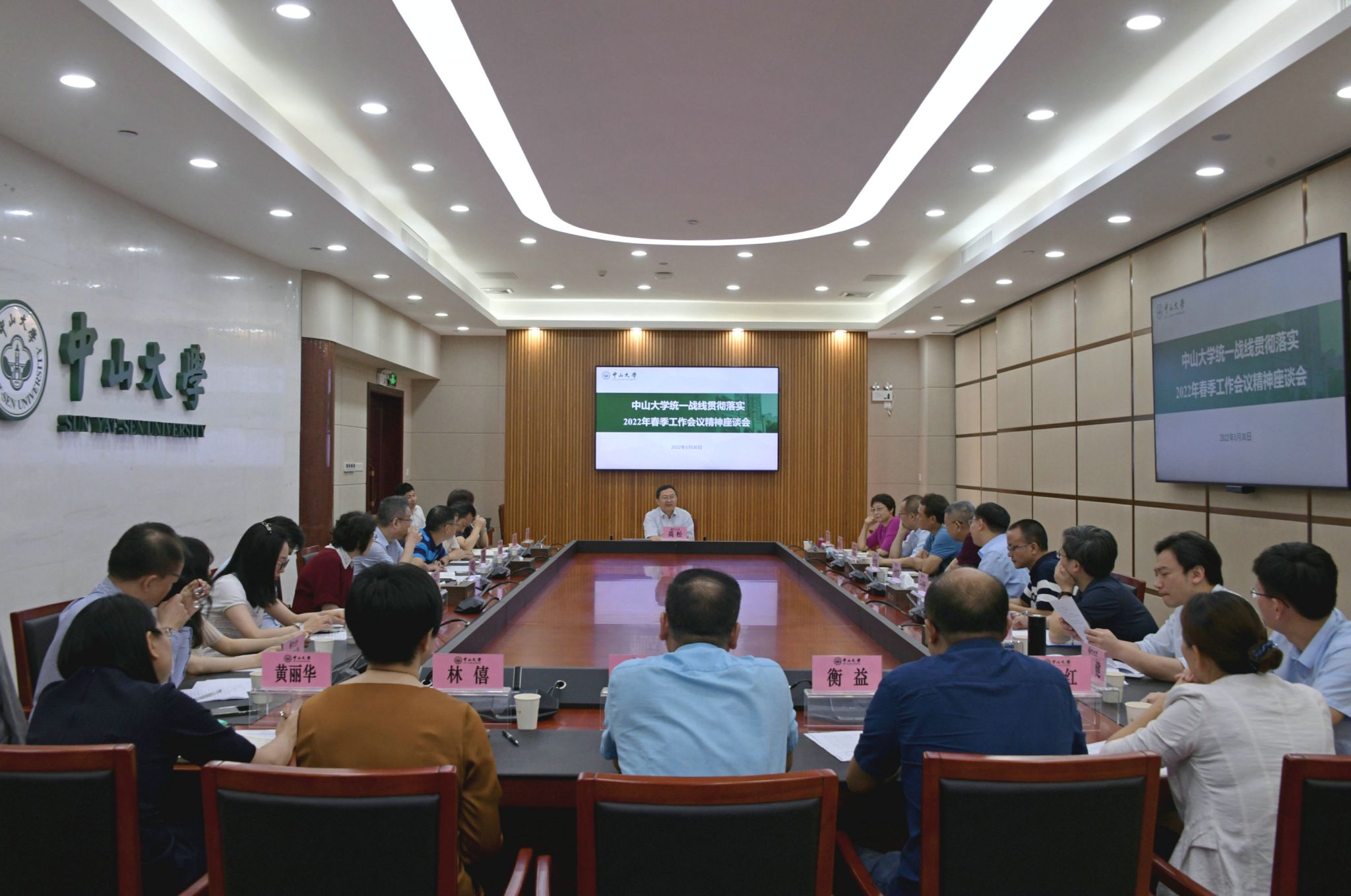 中大新聞網(wǎng)廣州6月1日電(通訊員陳愛玉)5月30日上午,我校統(tǒng)一戰(zhàn)線貫徹落實2022年春季工作會議精神座談會在廣州校區(qū)南校園召開。校長高松,校黨委副書記、統(tǒng)戰(zhàn)部部長國亞萍出席座談會。我校各民主黨派省直基層組織、統(tǒng)戰(zhàn)團體負責人及青年骨干代表共30余人參加了座談會。會議由國亞萍副書記主持。