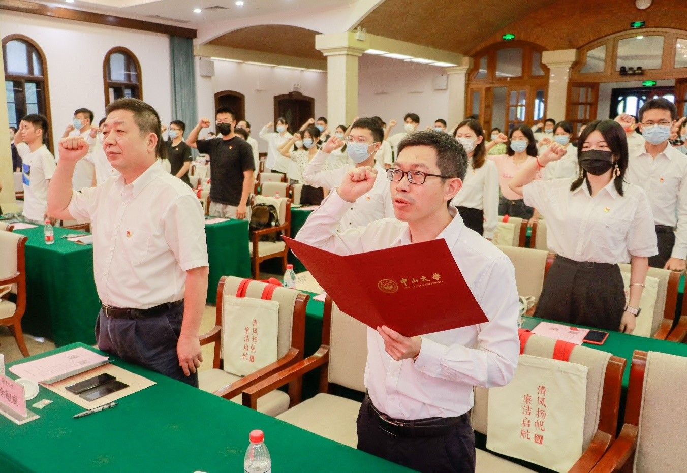余敏斌副書(shū)記、邰忠智副校長(zhǎng)、漆小萍主任分別向現(xiàn)場(chǎng)參加活動(dòng)的學(xué)生代表頒發(fā)了廉潔紀(jì)念章,并代表學(xué)校宣讀了《致中山大學(xué)2022屆畢業(yè)生廉潔倡議書(shū)》。黨委學(xué)生工作部部長(zhǎng)鐘一彪等分別帶領(lǐng)三校區(qū)現(xiàn)場(chǎng)參會(huì)的畢業(yè)生黨員重溫入黨誓詞。