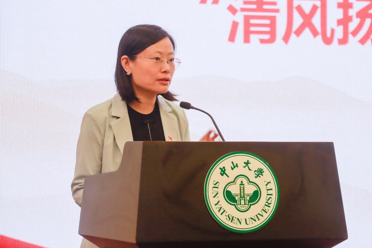 余敏斌副書(shū)記講話并宣讀《致中山大學(xué)2022屆畢業(yè)生廉潔倡議書(shū)》(來(lái)源:黨委宣傳部 肖遙攝)