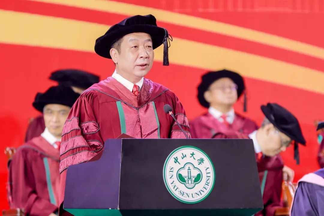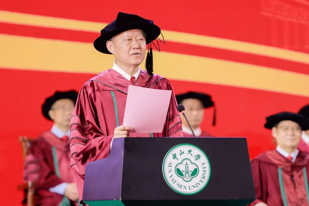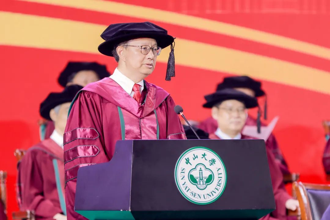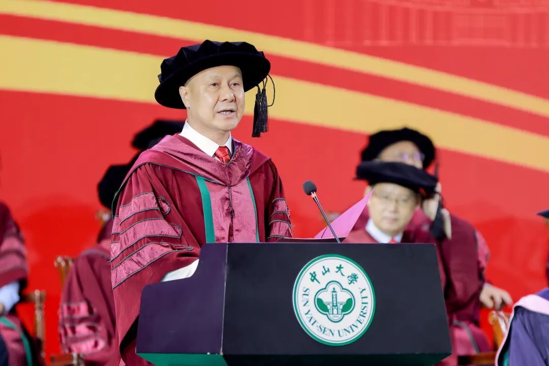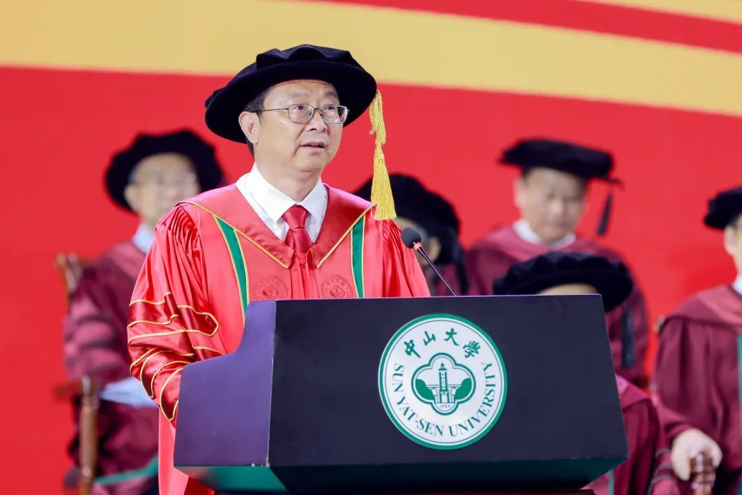 “今天,對于每位畢業(yè)的同學(xué)而言,都是值得永遠(yuǎn)紀(jì)念的日子。你們是我擔(dān)任中山大學(xué)校長以來,即將送走的第一批畢業(yè)生,你們的校齡比我的長。我和老師們?yōu)槟銈儗W(xué)成畢業(yè)感到欣喜,也為你們即將離別依依不舍?!?/p>