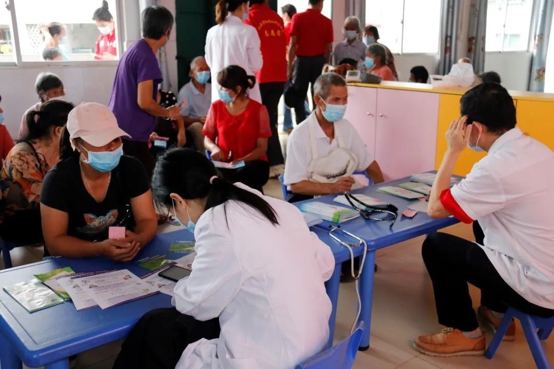 中山眼科中心的師生們?yōu)榍皝砭驮\的中老年群眾進行眼科疾病專項檢查,對兒童的近視、斜視等進行診斷治療,并深入講解常見的眼病,派發(fā)宣傳手冊,提醒群眾預防眼科疾病。