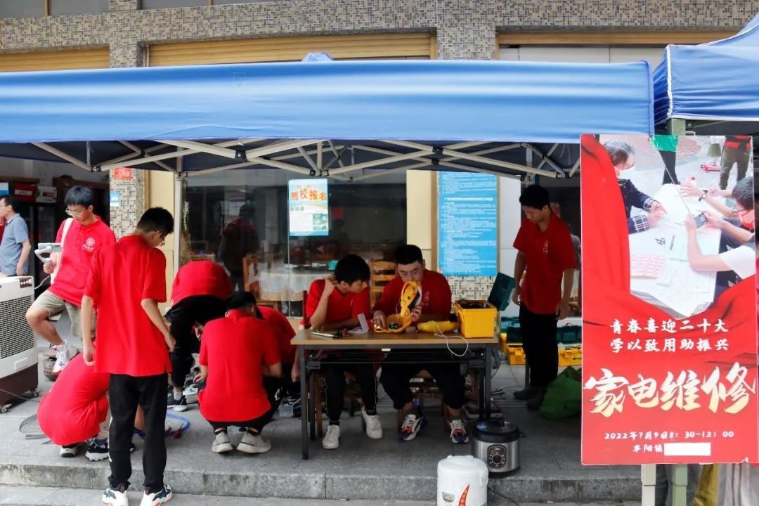 7月9日,在鎮(zhèn)中心街道,科技服務隊免費為村民維修家電。隊員們運用平時學習到的電路知識與操作技巧拆卸、修理電路,并為村民們答疑解惑。