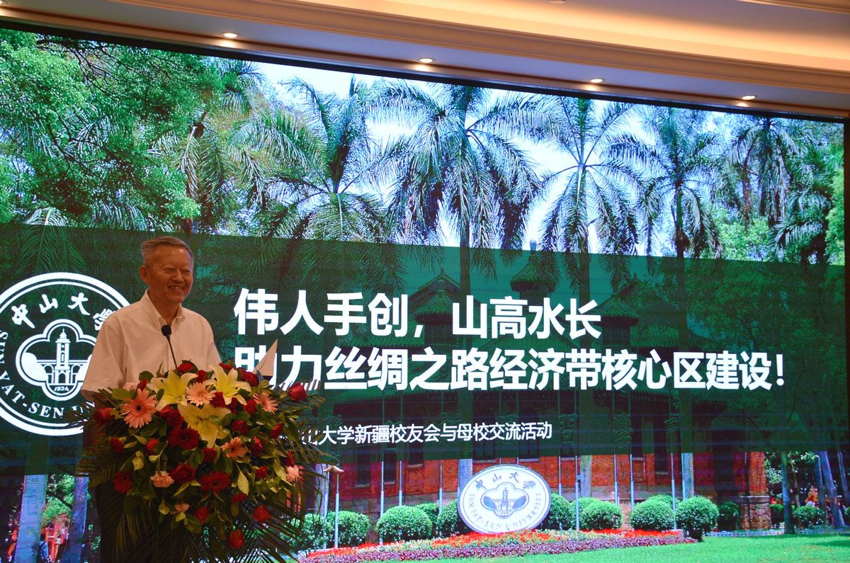 中國科學(xué)院院士、中山大學(xué)校長高松教授開場致辭。高松校長指出,近年來中山大學(xué)積極響應(yīng)黨中央和國家號(hào)召,全面貫徹落實(shí)習(xí)近平總書記關(guān)于新疆工作的重要指示精神,發(fā)揮中大教育和醫(yī)療優(yōu)勢,為新疆建設(shè)貢獻(xiàn)中大力量。新疆的中大援助干部和廣大校友積極發(fā)揮專業(yè)所長,為新疆和母校之間搭建了交流與合作的平臺(tái)??吹酱蠹以吔?,無私奉獻(xiàn),他深受感動(dòng)。高松校長還向校友們介紹了學(xué)校近年來在學(xué)科建設(shè)、人才培養(yǎng)、科研平臺(tái)建設(shè)和社會(huì)服務(wù)等方面所取得的成績,并指出,學(xué)校的每一步發(fā)展都離不開廣大教職工和校友們的共同努力與奮斗。2024年,中大將迎來百年校慶,期待能與校友們共同見證這一輝煌時(shí)刻,并祝愿校友們在各自工作崗位上取得更大的成就。